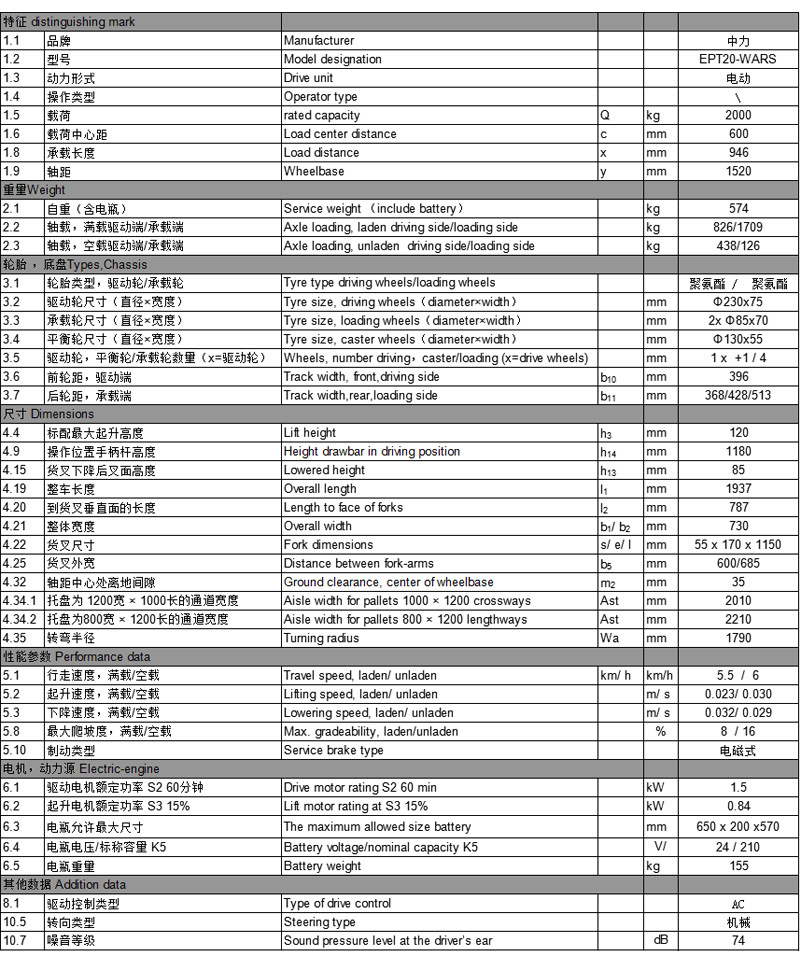 中力2.0噸電子轉(zhuǎn)向電動搬運車 EPT20-WARS