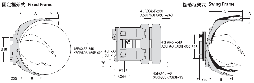 | 2300 | X50F-RCF-002B | ISO 3A | 0° | 850 | 595-1350 | 570 | 65 | a | 738 | 237 | 272 |