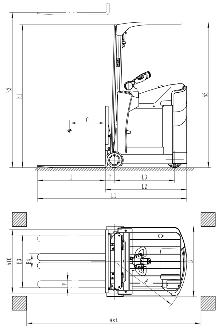 | 車體長度 | 車尾至豎直貨叉前端面 | L2 | 1140 | 1499 | 1499 | ||