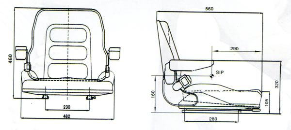 座椅為叉車(chē)及其它工業(yè)車(chē)輛設(shè)計(jì)的經(jīng)濟(jì)型駕駛員座椅。它沒(méi)有懸浮裝置。但其座背、靠背均采用真空發(fā)泡一次成型技術(shù),便于拆換。